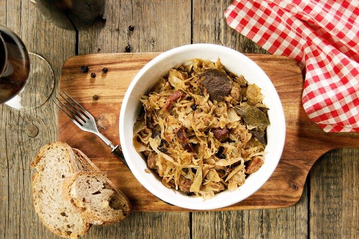 Это классика кухни Литвы, Польши, Латвии и Беларуси. Главный ингредиент – квашеная капуста – в тандеме со свежей, мясом и копченостями, образуют настоящий симфонический букет ароматов. У каждого повара есть свои маленькие секреты, но одно остается неизменным: бигос должен быть приготовлен с любовью.