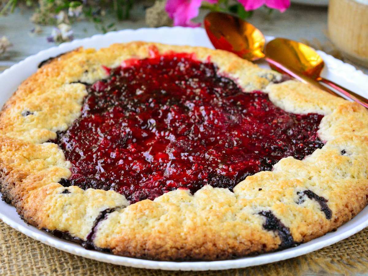 Вы сможете работать с этим тестом без страха, что оно прилипнет или порвется. Раскатайте тесто прямо на пергаменте, добавьте начинку и просто придайте форму. Для начинки прекрасно подойдут как свежие, так и замороженные ягоды малины — они остаются сочными благодаря специальному крахмалу, который не даст начинке размокнуть.