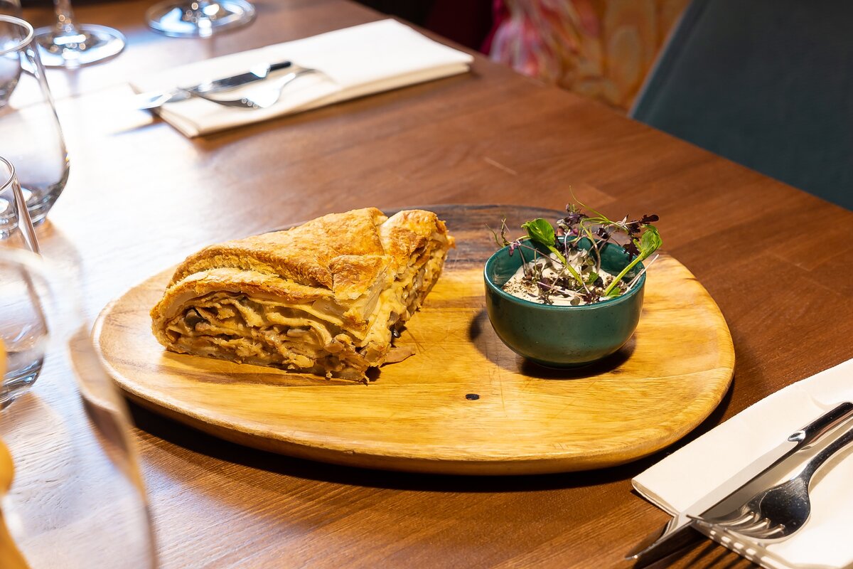 Курник с курицей и грибами — это классическое блюдо, в котором гармонично сочетаются нежность куриного мяса и аромат лесных грибов. Рекомендуется использовать белые грибы для достижения наилучшего вкуса. За рецепт отвечает шеф-повар винного гастробара Blush Андрей Колодяжный.