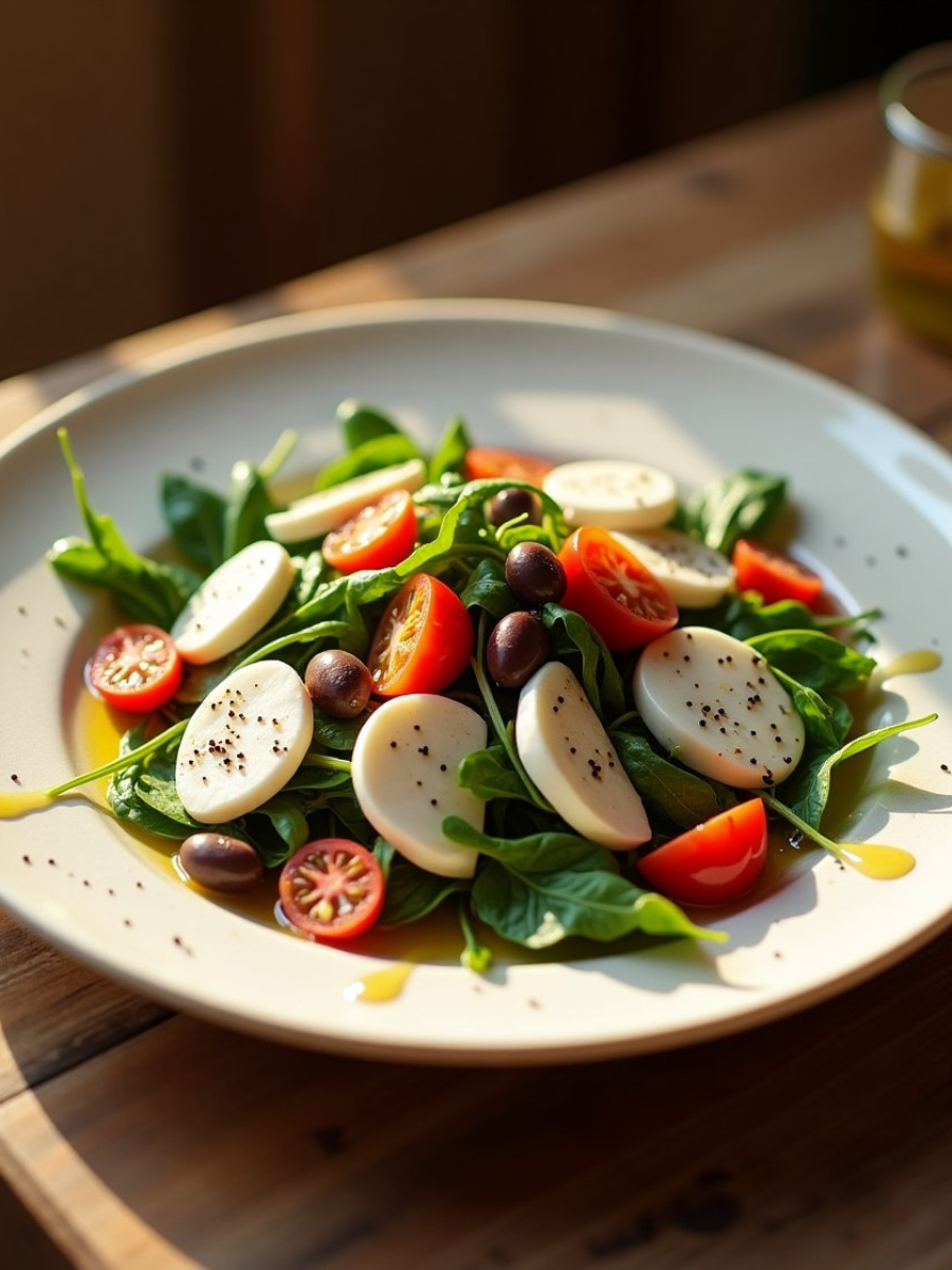 Представляем вашему вниманию обновленный рецепт салата, который сочетает в себе легкую горчинку рукколы, сладость сочных помидоров черри, нежность моцареллы и изысканный аромат оливкового масла. Эта аппетитная комбинация представляет собой настоящую симфонию вкусов.