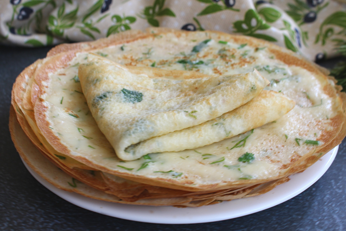 Тонкие блинчики с зеленью — это не только отличное самостоятельное блюдо, но и универсальная основа для различных несладких начинок. Их можно подавать со сметаной, творожным сыром, слабосоленой рыбой или разнообразными соусами. Для приготовления теста потребуется молоко, а в самом конце в него добавляется мелко нарезанная зелень. В качестве дополнительных ингредиентов подойдут укроп, петрушка, кинза или зеленый лук. В этом рецепте используются укроп и кинза, но количество зелени можно регулировать по вашему вкусу. Такие блины получаются мягкими, эластичными, с едва заметной текстурой зелени и удивительным вкусом.