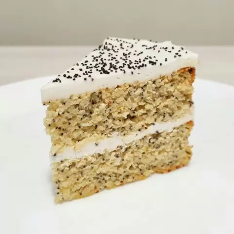 Сборка торта проходит в кольце с ацетатной лентой: выложить слой бисквита, затем крем, повторить два раза. Перед подачей украсить маком и охладить в холодильнике минимум 4 часа. Это лакомство обязательно привлечет внимание как приверженцев кето-диеты, так и любителей сладкого!
