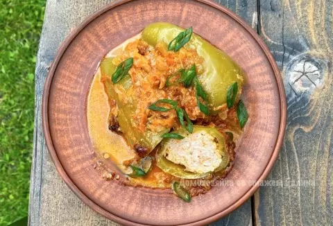 Начините перцы, аккуратно помещая их в форму для запекания. Сверху добавьте остатки жареных овощей и залейте соусом, состоящим из томатной пасты и сметаны. Закройте форму фольгой и отправьте в предварительно разогретую духовку (160-170°C) на полтора часа. Итогом станет ароматное и уютное блюдо, которое станет настоящей звездой вашего стола.