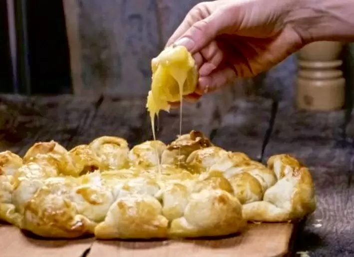 - Французский слоеный тарт с карамелизованным луком и камамбером: Этот пакетик из слоеного теста с сыром подарит неповторимое сочетание сладости и солености.