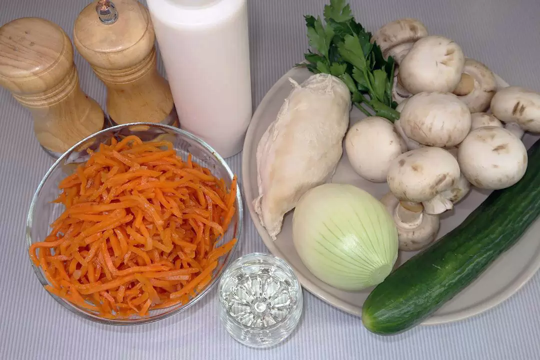 Представляем вашему вниманию рецепт слоеного салата «Восторг» с корейской морковью — быстрое и простое блюдо, идеально подходящее как для праздничного стола, так и для повседневного ужина.