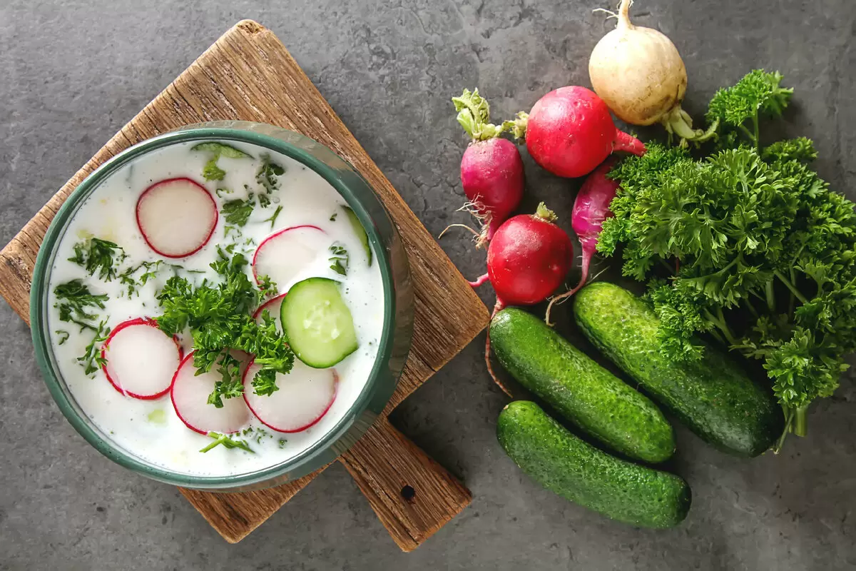 - Свежие ингредиенты. Лето — это пора овощей. Огурцы, редиска, зелень. Смешай их с квасом или кефиром, и ты получишь не просто суп, а сплошное наслаждение. К тому же, поверь, эти яркие цвета самого блюда украсят твой стол.