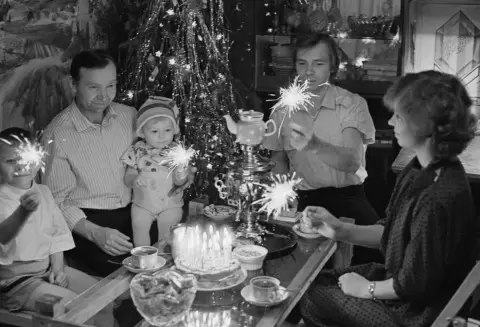 Телевизоры в тот период были непросто аксессуаром. Они были настоящими участниками праздника. Программа "Голубой огонёк" и классика, такая как "Ирония судьбы", стали обязательными атрибутами новогодней ночи, без которых не обходилась ни одна встреча нового года. Вот так, наслаждаясь любимыми шоу, миллионы людей по всей стране встречали двенадцать ударов курантов, чтобы затем открывать шампанское именно в полночь, сбрасывая пробки в люстрой.