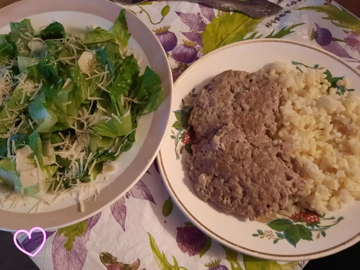 Кроме булгура, в обед можно включить паровые котлеты из говяжьего фарша, которые готовятся без добавления панировочных ингредиентов, сохраняя все вкусовые качества мяса. Лук, соль и перец - вот и весь секрет. Обжарить с обеих сторон и затем тушить на медленном огне с добавлением небольшого количества воды.