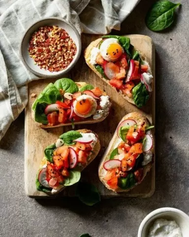 Эти брускеты станут отличным вариантом для сытного перекуса, который порадует не только вкусом, но и яркой подачей!