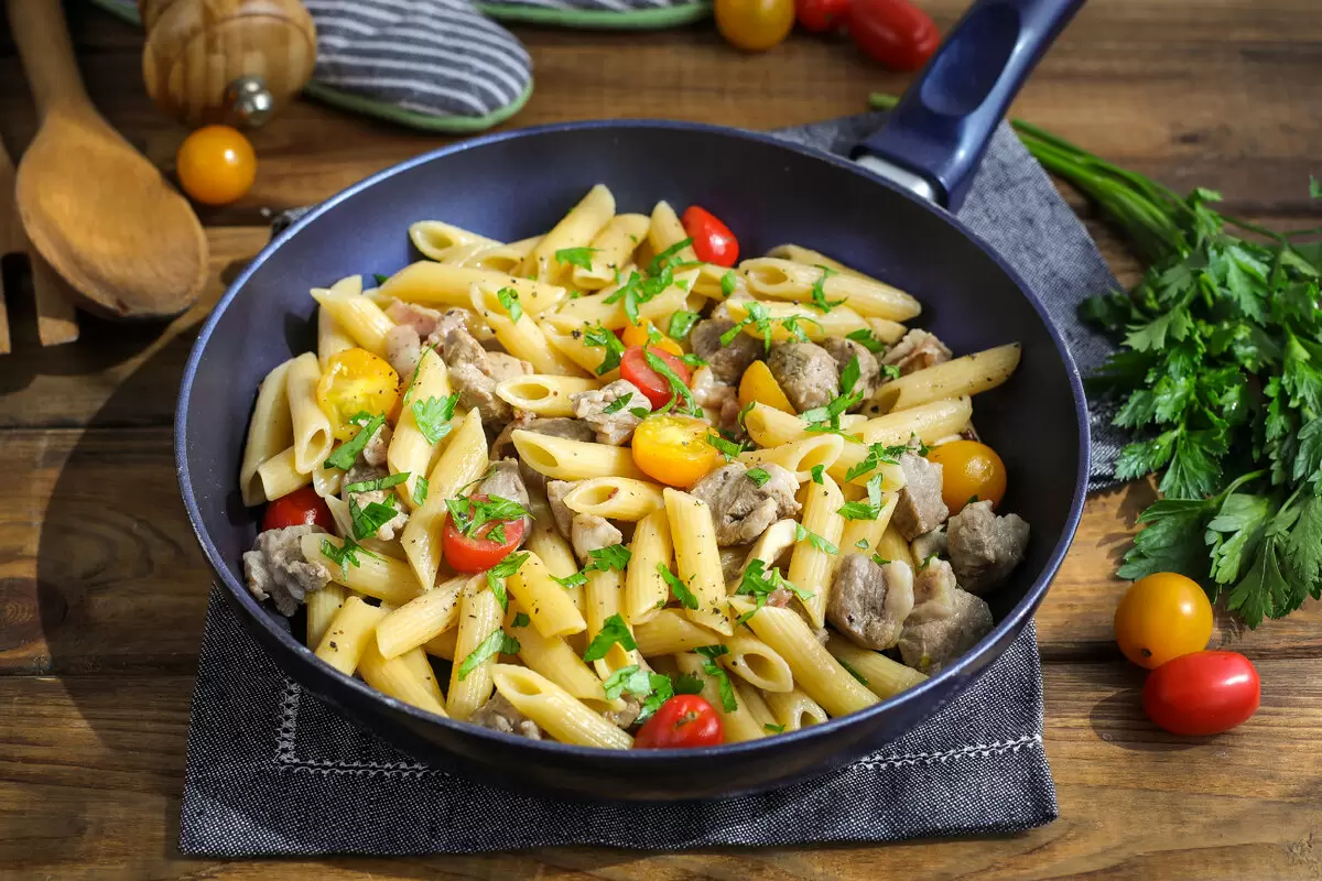 Шаг 1: В большой кастрюле довести до кипения два литра воды с добавлением соли. Опустите в кипящую воду пенне и варите 8-9 минут, периодически помешивая. Паста должна быть аль денте, затем откиньте ее на дуршлаг и верните в кастрюлю, добавив немного растительного масла, чтобы избежать слипания.