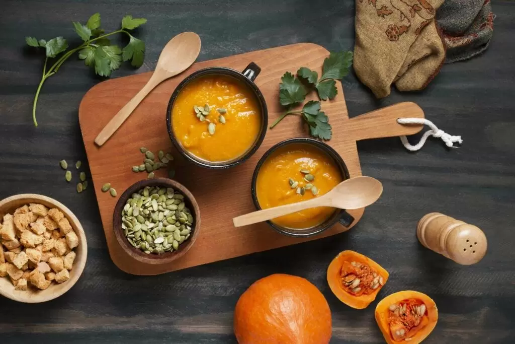 Настоящая классика, символизирующая осенний сезон. Этот суп восхищает своей бархатистой текстурой и нежным сладковатым вкусом, способным согреть и поднять настроение. Главный ингредиент — тыква, созревающая именно осенью.