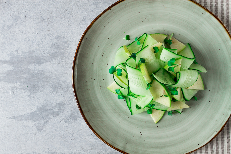 Приготовление этого простого, но восхитительного салата начинается с нарезки огурцов и яблока. Их нужно нарезать тонкими слайсами или натереть на терке для корейской моркови, чтобы достичь нужной текстуры. Далее, все ингредиенты помещаются в глубокую миску.