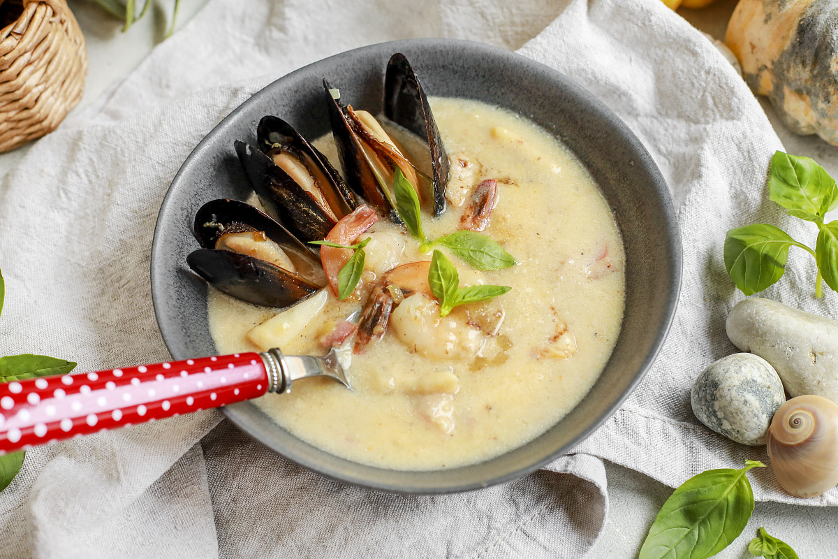 Суп Чаудер – это настоящий кулинарный шедевр, способный украсить любой стол. Вдохновляющий аромат свежих морепродуктов в сочетании с хрустящим беконом создают идеальную гармонию вкусов. Эта рецептура идеально подходит как для семейного ужина, так и для званого вечера с друзьями.