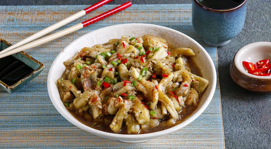 В Корее баклажаны часто используют не только для основных блюд, но и в холодных закусках. Это блюдо представляет собой освежающий летний суп, который подают к столу вместе с традиционными закусками, открывающими любой обед.