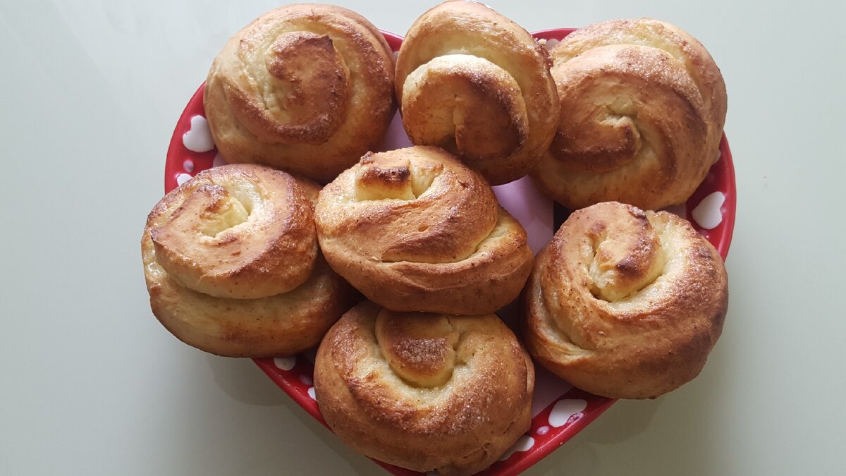 Смешав все ингредиенты, тесто нужно отставить на 1,5 часа для подъема. Затем раскатать в пласт толщиной 4 мм, обмазать сливочным маслом и обсыпать сахаром. Рулет, нарезанный на порционные кусочки, отправляется в разогретую духовку на 25-30 минут при температуре 180 градусов. Запах свежей выпечки вплетется в утреннее спокойствие, создавая настроение на весь день.