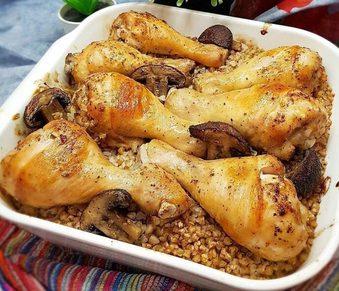Куриные ножки с грибами и гречкой: вкусно и просто