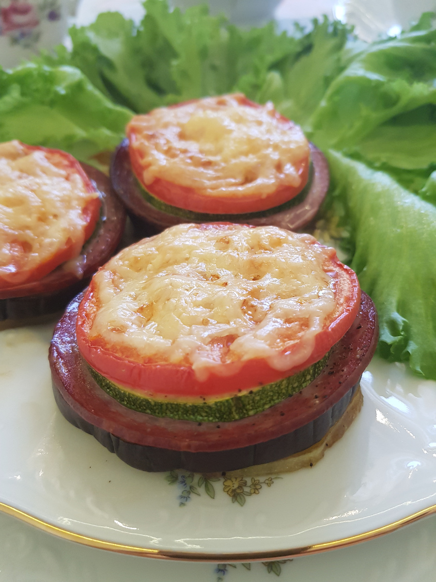 Перед подачей выложить на тарелку промытые листья салата и горячие овощные тарелки. Блюдо готово к дегустации!