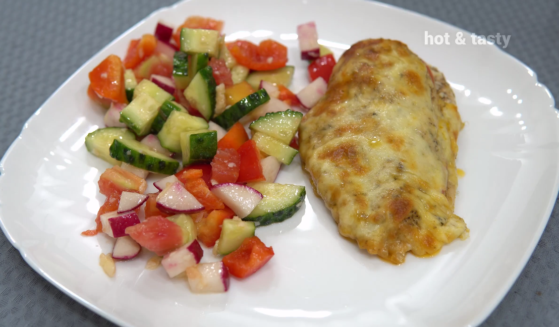 Курица остается мягкой и сочной, а начинка из плавленого сулугуни и свежего помидора добавляет неповторимое тепло и аромат. Золотистая корочка сверху придаст вашему блюду вид ресторанного шедевра, даже если оно приготовлено в домашних условиях.