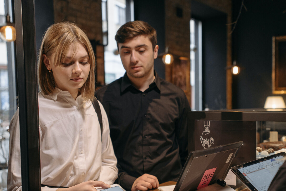 Дверь открылась, и в кафе вошла пара с яркими кольцами, указывающими на их статус. Высокий мужчина в округлых очках, теплой жилетке и сандалиях при тридцатиградусной жаре выглядел очень странно. Его спутница в длинном цветастом платье с прищуром осмотрела наше заведение. От этого стало даже обидно — да, мы не мишленовский ресторан, но такое презрительное отношение было излишним.