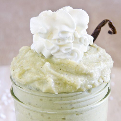 Замочить тапиоку в 1 стакане молока комнатной температуры на 1 час.Взбить желтки с сахаром до легкого бледно-желтого цвета.Разрезать ванильный стручок пополам и аккуратно извлечь семена.Смешать подготовленную тапиоку с кокосовым молоком в кастрюле и добавить взбитые желтки, ванильные семена и сам стручок.Нагревать на среднем огне, постоянно помешивая, пока не закипит (примерно 15 минут). Убавить огонь и готовить еще 20 минут, пока тапиока не станет полупрозрачной. Длительность приготовления зависит от размера тапиоки: мелкая готовится быстрее, а крупная — медленнее. Главное — не забывайте мешать, чтобы не пригорала. После чего дать остыть и добавить пудру зеленого чая, тщательно перемешать до однородного состояния. Удалить ванильный стручок.Разлить десерт по креманкам и охладить в холодильнике в течение 2 часов.Подавайте с взбитыми сливками по вкусу.