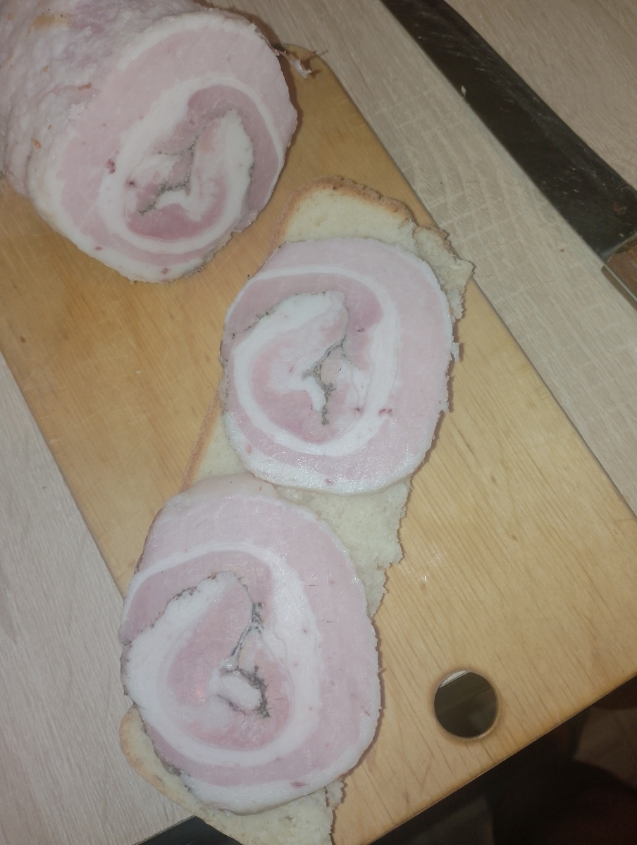 Накануне вечером был приготовлен суп, однако брать его на работу никто не хотел. Утро стало идеальным временем для кулинарных экспериментов, в результате чего на завтрак состояло три бутерброда с мясными деликатесами собственного производства. Такой подход к питанию позволяет создать полезный и гармоничный рацион. Из них один бутерброд с салом стал отличным выбором для первого приема пищи, в дополнение к которому предлагается пара яиц. На обед также запланированы два бутерброда и гарнир из маринованной капусты – отличный способ разнообразить меню и сделать его более насыщенным.