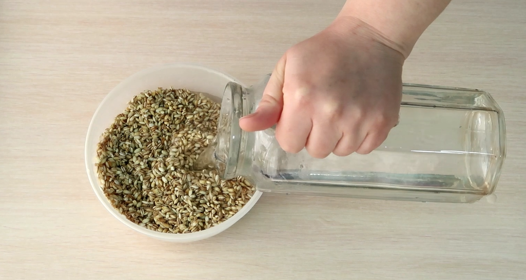 Первоначально, перловую крупу стоит хорошенько промыть, пока вода не станет прозрачной. Затем, ее нужно залить теплой водой и оставить на полчаса.