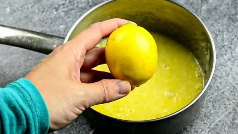 3. Смешайте лимонную смесь и поставьте её на средний огонь, постоянно помешивая. Ожидайте, пока она не загустеет.