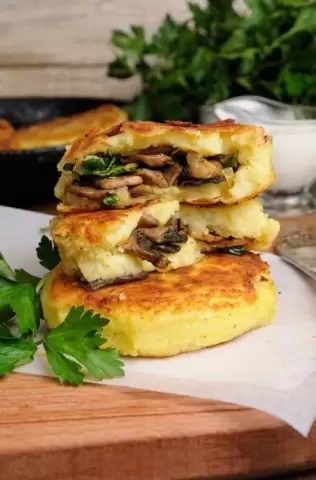 Картофельные зразы – это универсальное и незаменимое блюдо, которое можно подавать на завтрак, обед или ужин. Приготовление не отнимет много времени, а состав ингредиентов окажется доступным каждому. Начинка может варьироваться в зависимости от ваших вкусовых предпочтений: грибная, мясная, капустная или куриная. Нежные котлетки из картофельного пюре с ароматными грибами прекрасно сочетаются со сметаной.