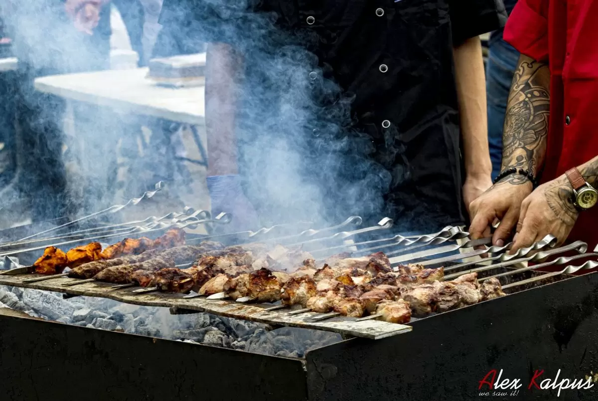 - Выбор угля: Для лучшего аромата мцвади готовят на углях из виноградной лозы или фруктовых деревьев. Эти источники угля придают блюду легкий дымный оттенок, который невозможно получить на обычных дровах.
