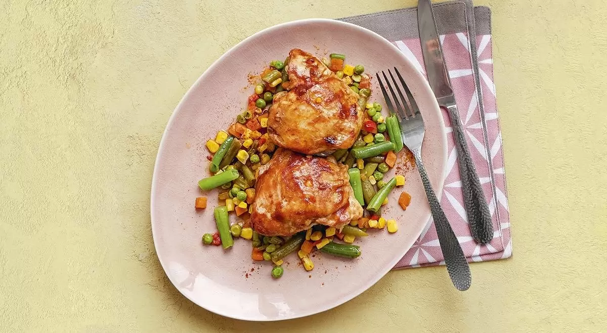 Секрет этого незамысловатого блюда в том, что большую часть работы берет на себя духовка. Для приготовления курицы, смазанной соусом барбекю, достаточно разместить её на «подушке» из замороженных овощей, обернув все это в фольгу. Плотная упаковка сохранит пар внутри, что позволит курице и овощам готовиться на пару, оставаясь при этом сочными и ароматными. В завершение можно раскрыть конверты и добавить немного соуса, чтобы получить хрустящую корочку.