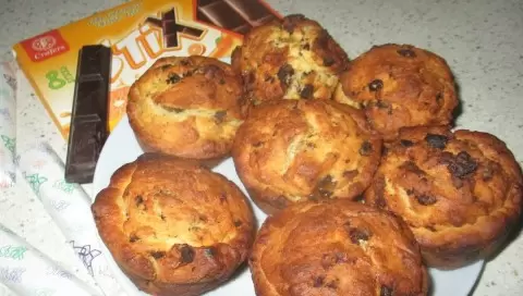 Горячие кексы снимают с форм и дают им немного остыть. Вкус становится мягким и нежным, шоколад внутри расплавляется, а сухофрукты остаются мягкими и ароматными. Совокупность теста, шоколада и фруктов создаёт спокойное, удовлетворяющее послевкусие.