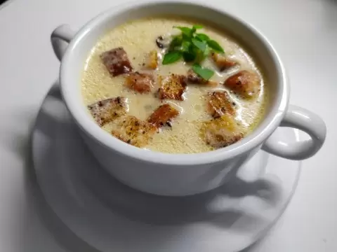 Для сухариков: нарезать хлеб на кубики, слегка присолить, добавить любимые травы и немного масла. Запечь на небольшом огне до румяной корочки. Горячие сухарики можно посыпать тертым сыром для улучшения вкуса.