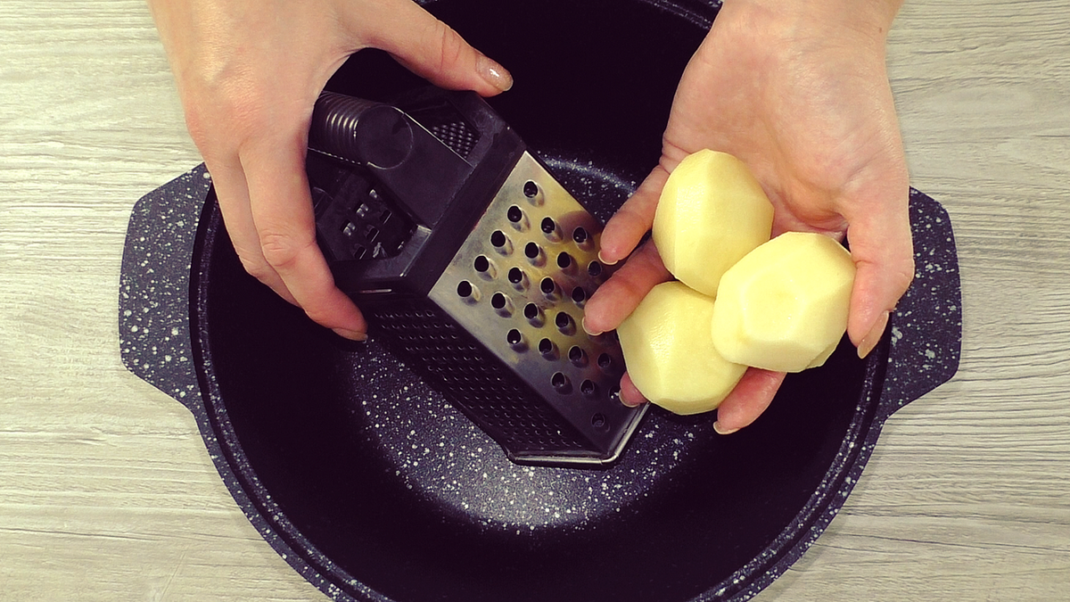 Для этого рецепта картошку лучше натереть на мелкой терке, но подойдет и крупная. Если картофель темнеет слишком быстро, добавьте в массу немного соли, чтобы предотвратить окисление. Следующим шагом введите яйца, затем тщательно перемешайте все ингредиенты до получения однородной массы.